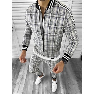 Pantaloni barbati casual regular fit gri in carouri B1561 B-7
